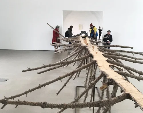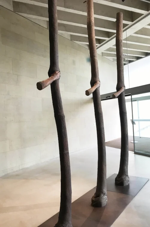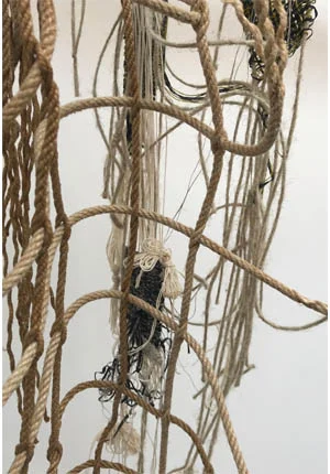 The tactility of the materials is part of the message. The texture of the materials from the smoothness of bone or the roughness of rope to the coldness of metal are triggers for our senses beyond mere sight. Through these sensations it is hoped to trigger a greater awareness of how we connect to the world around us and how we might lead more stable and grounded lives.