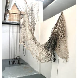 As a reaction to the new reality, my work uses physical objects to explore what it is to be human and our connection with the world in which we find ourselves. The use of materials such as bailing twine provides a clear link to agrarian communities and the land on which much of our livelihood still depends. The juxtaposition of antithetical materials such as the plastic twine and animal bones seek to emphasise the role of the human in the husbandry of the land and our place in the world among animal and plants.
