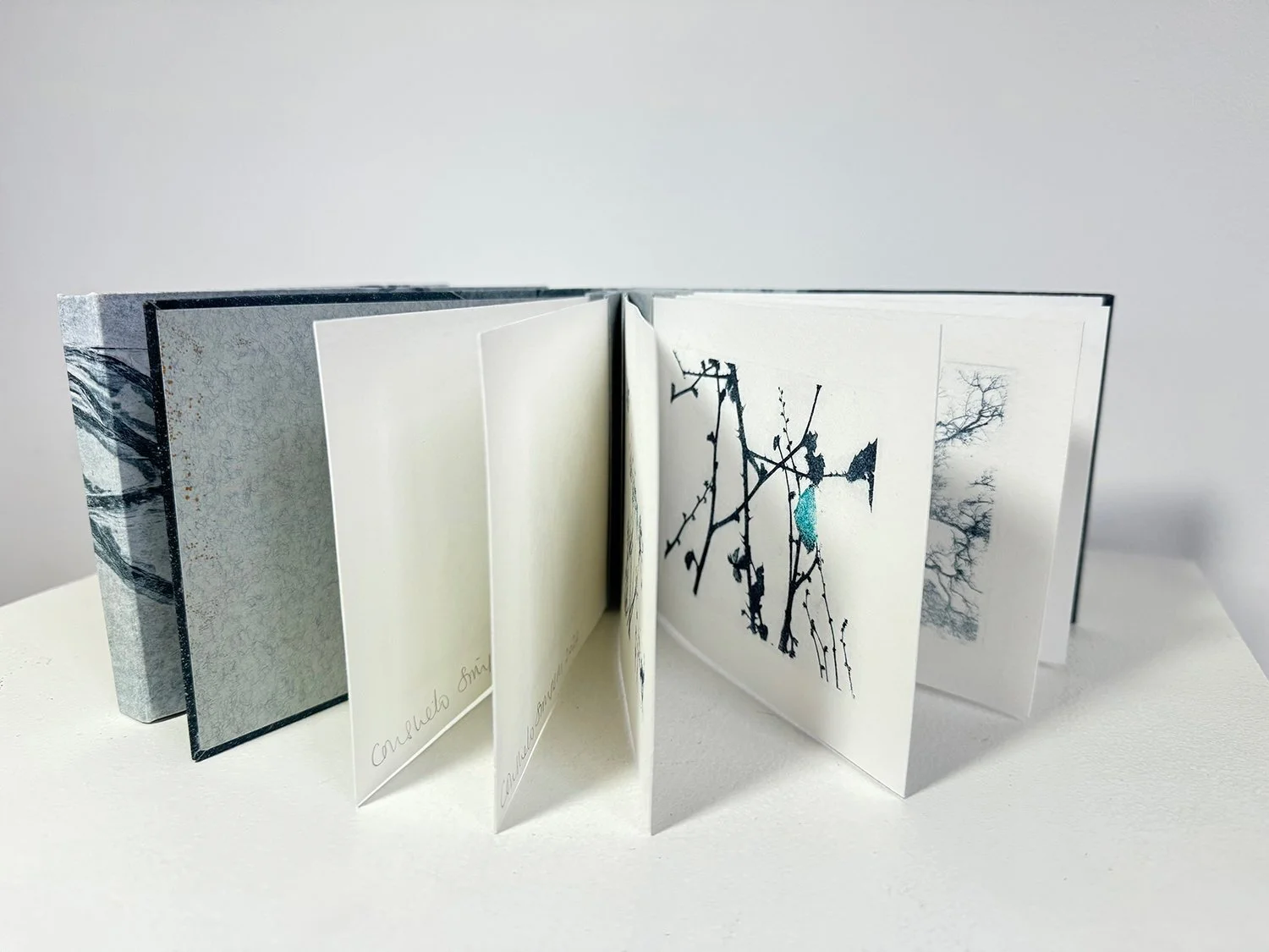 Seven paper lithographs in hand bound artist book, monoprinted covers