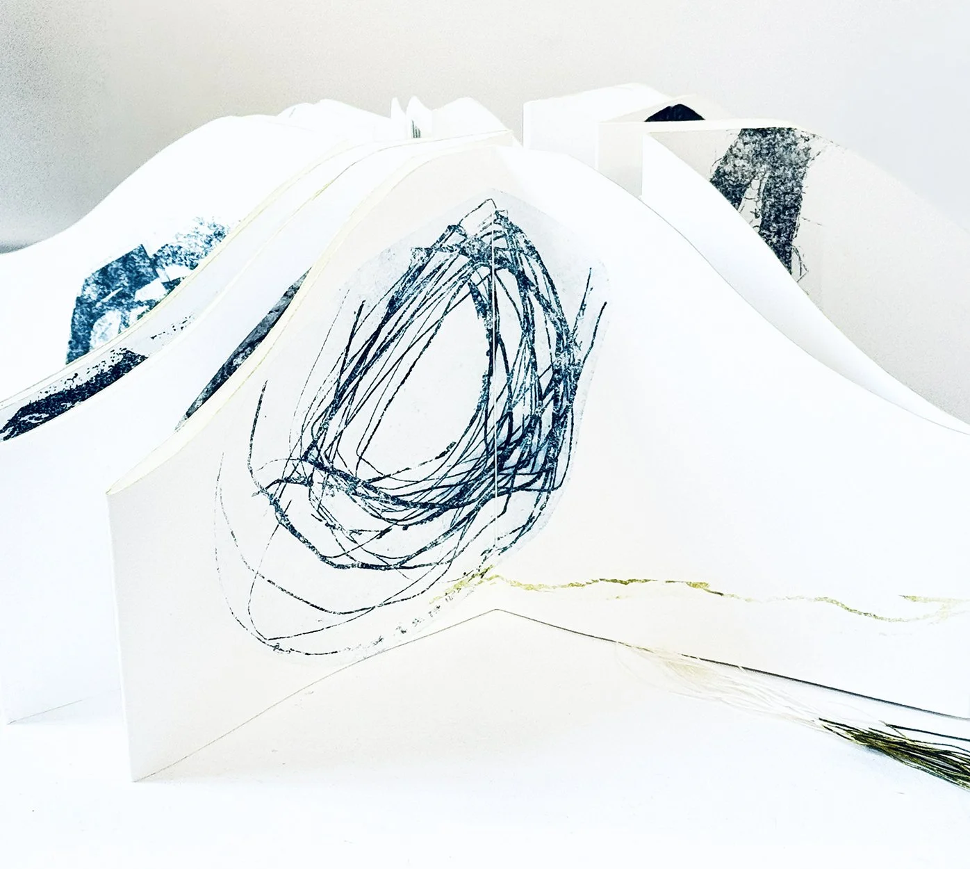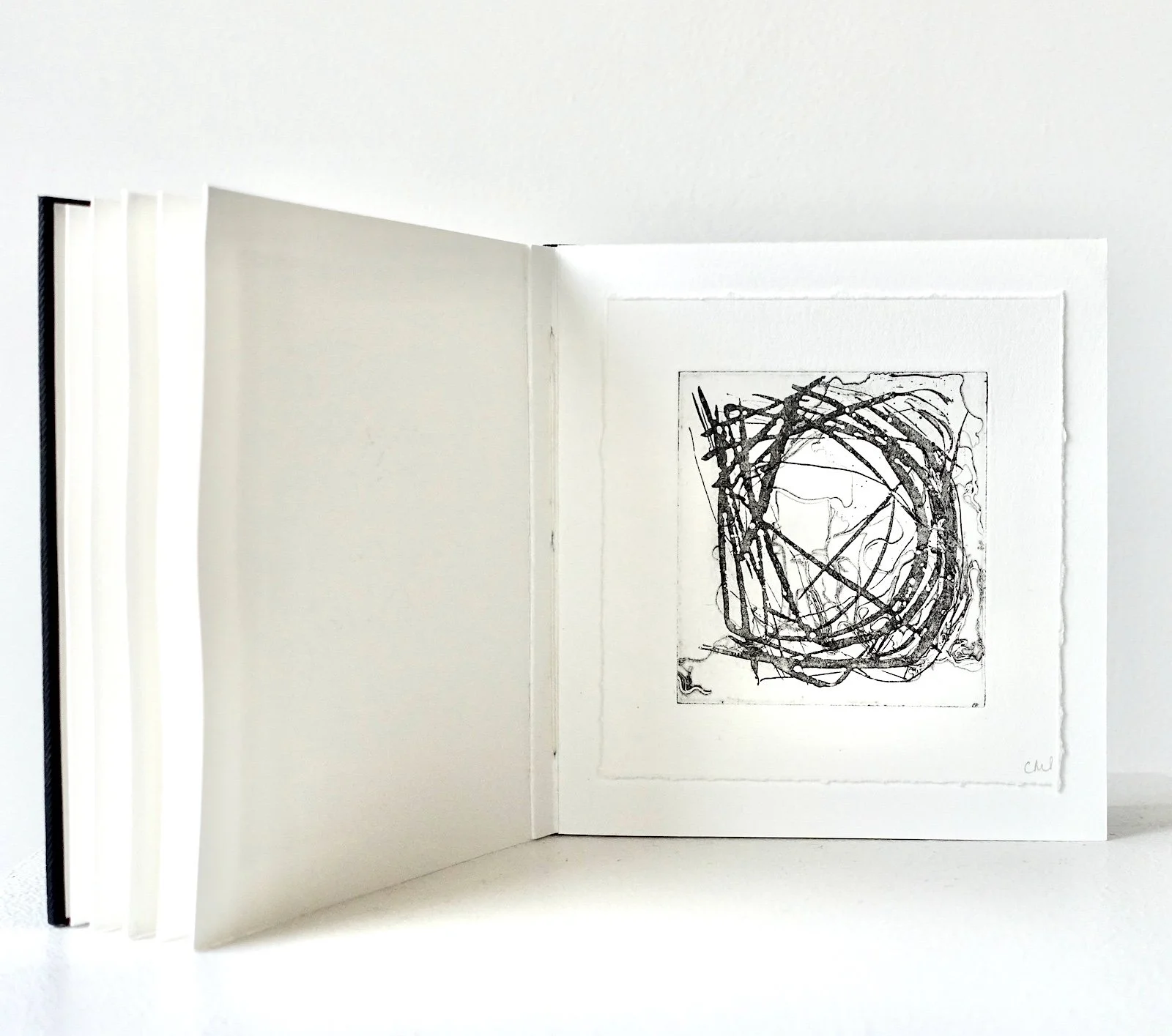 Artist book with paper lithographic illustrations of yarns and links and chain